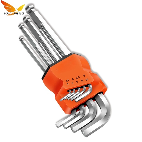 Einstellbarer metrischer CRV DIY-Doppelkopf L-förmiger Sechs kant schlüssel Kugelkopf-Inbus schlüssel OEM Anpassbarer Support Packed Box