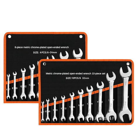 Verchromter metrischer 8-teiliger und 10-teiliger Satz offener Schraubens chl üssel DIY Grade Manual Double-Ended Wrench Custom ized OEM Support